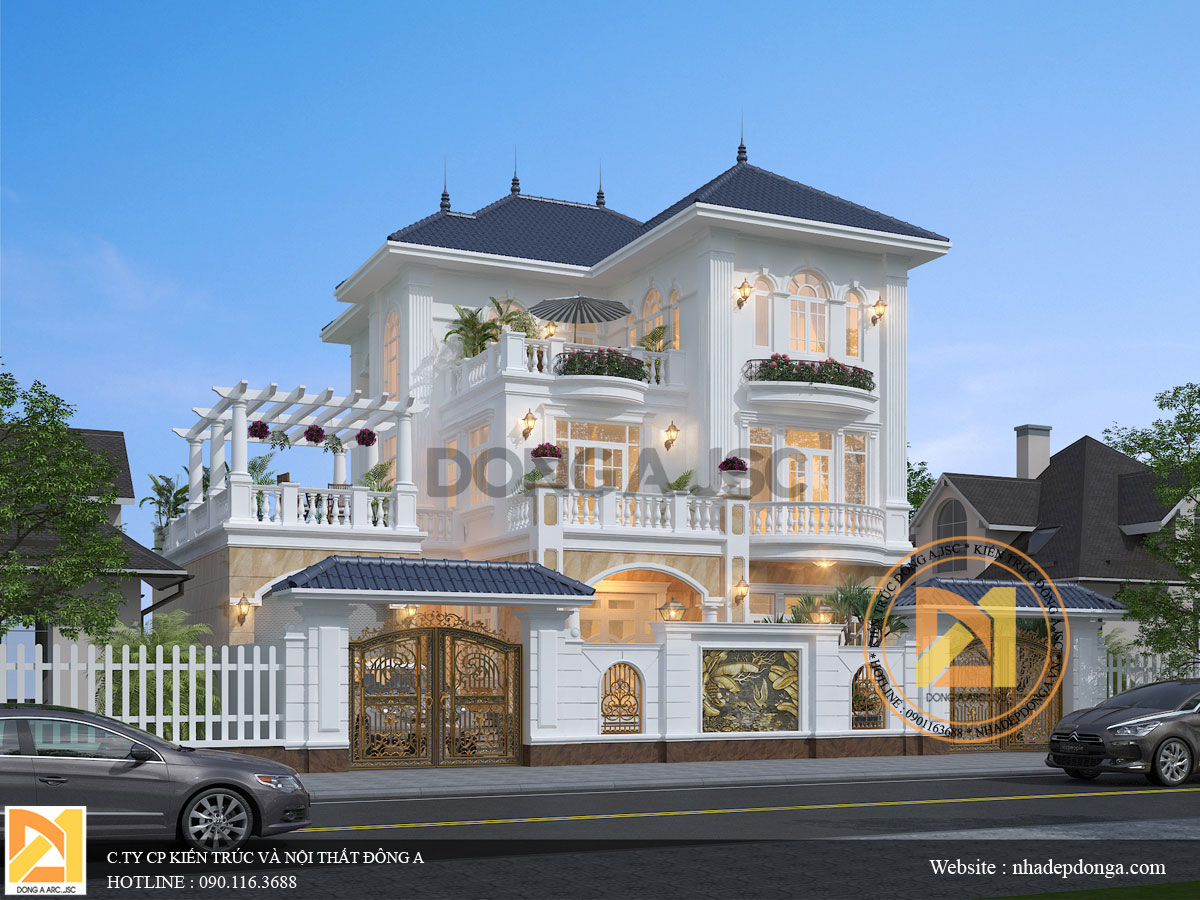 Nếu như bạn yêu thích phong cách tân cổ điên thì sẽ là một sự thiếu sót khi không biết đến mẫu thiết kế biệt thự 3 tầng tân cổ điển 130m2 ở Tháo Bình. Hãy cùng Nhà Đẹp Đông A ngắm nhìn sức hút trước vẻ đẹp sang trọng, đẳng cấp của mẫu thiết kế biệt thự 3 tầng tân cổ điển 130m2 này.